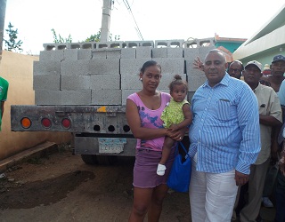 El alcalde Ramón Pascual Gómez Abreu (El Mello) visitó a Nataly Caminero llevando consigo materiales de contrucción para de inmediato obreros al mando del ayuntamiento iniciar la edificación de su nuevo hogar.