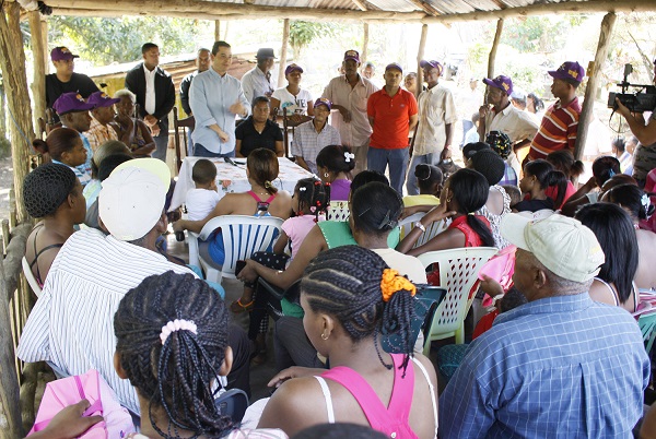 Omar de Marchena reunido con habitantes del sector Los Corozos en Pedro Brand a quienes prometió gestionar ante la CDEEE suministro de energía eléctrica.