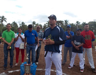 Las madrinas de los equipos fueron Alín Medrano, por la Primera Brigada; Marleni Manzueta, de Los Chacalos, Delys Viola, de Los Troncos y Nidia Mejía, de Los Titanes del 24, quienes intercambiaron con algunos de los invitados un hermoso arreglo floral.
