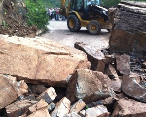 Derrumbe bloquea el tránsito entre Hoyo de Nigua y Constanza.