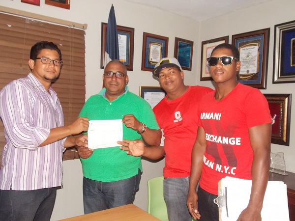 Ramón Pascual Gómez Abreu (El Mello) hizo entrega del cheque al dirigente deportivo Jonthan Méndez, presidente del comité organizador, quien estuvo acompañado de dos de los atletas que participan en el torneo que también recibirán su premio en efectivo.