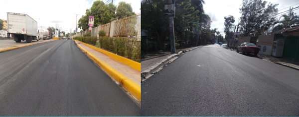 A la izquierda la calle marginal en el kilómetro 28 de la autopista Duarte y luego la antigua carretera Duarte por el barrio Eduardo Brito.