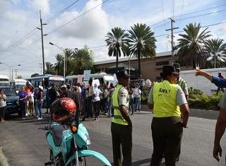 En el lugar donde se realiza la protesta se encuentran miembros de la Policía Nacional y de la Autoridad Metropolitana de Transporte (AMET).