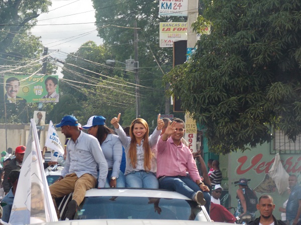 La caravana estuvo encabezada por la aspirante a alcaldesa, ingeniera Kimberly Taveras Duarte y su compañero de boleta como candidato a vicealcalde, el reformista David Rivera García, quienes buscan ganar la contienda electoral a celebrarse este próximo domingo.