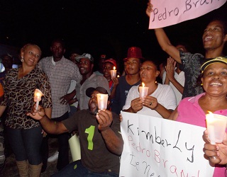 PEDRO BRAND.- Decenas de seguidores de la excandidata a la Alcaldía de Pedro Brand, ingeniera Kimberly Taveras Duarte, realizaron esta noche una protesta con encendido de velas frente a la Junta Electoral Municipal (JEM) de aqui exigiendo recuento de los votos del nivel “B” o municipal en esta demarcación.