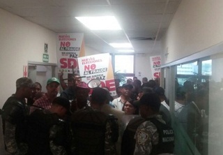 Excandidatos alcaldes SDE y seguidores entrar a la fuerza al TSE