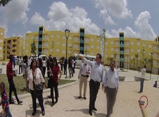Durante el recorrido se explicó que más del 90 por ciento de las familias beneficiarias tienen seis hijos y que de algunos hogares los padres han solicitado apartamentos para sus hijos mayores, mientras que el 53 por ciento de las mujeres son jefas de hogar.