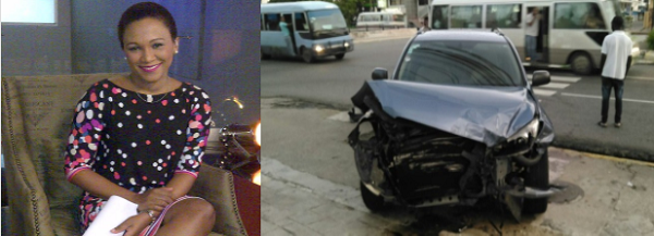 Periodista Edith Febles sufre accidente en su vehículo al chocar con «guagua voladora»