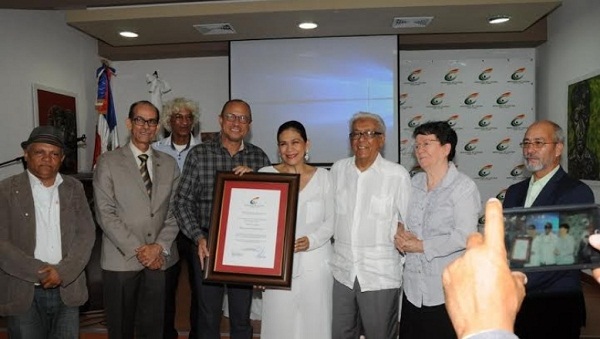 La artista recibió un certificado de reconocimiento que dice se le entrega “por su exitosa carrera de 35 años, siendo una de las voces más altas del cancionero dominicano, y por haber puesto en alto el nombre de la República Dominicana en varios eventos internacionales”.