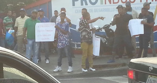 Personas prestamistas protestan en la entrada al parque industrial de San Pedro Macorís
