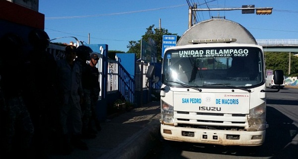 SAN PEDRO DE MACORÍS.- Agentes policiales portando armas largas se encuentran apostados en la mañana de hoy a la entrada del parque industrial de zona franca para impedir la incursión de prestamistas que protestaron la semana pasada porque se le impidió entrar a negociar con los obreros.