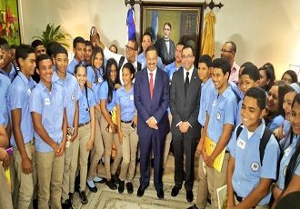 Rosario y Navarro compartieron ayer con estudiantes del liceo Domingo Faustino Sarmiento, del municipio Moca, provincia Espaillat, quienes visitaron la sede de la JCE.
