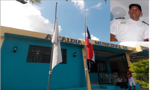 PEDRO BRAND.- Por disposición del alcalde del municipio Pedro Brand Ramón Pascual Gómez Abreu (El Mello), tanto la bandera nacional como del ayuntamiento, ondean este día a media asta por la muerte del mayor de la Policía Municipal, Manuel Vásquez Hernández, quien fue encontrado sin vida la madrugada de ayer en un hotel a la entrada de Los Alcarrizos, en circunstancia que investigan las autoridades policiales.