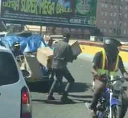 El más reciente caso de asalto a uno de los camiones del Plan Social de la Presidencia se produjo en Villa Duarte, Santo Domingo Este, atribuido al grupo motorizado denominado “Los Moscas”.