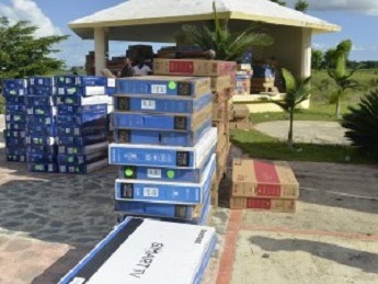Los 893 televisores de diferentes marcas, modelos, y tamaños, fueron encontrados en una propiedad privada localizada en el batey “Fiesta de los Blancos”, en la comunidad de Gautier, al Este de Santo Domingo.