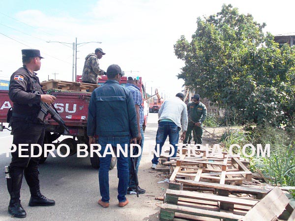 Esta tarde una brigada compuesta por varios miembros de la PM continuó con el operativo en la autopista Duarte, cuando llegó a un negocio que vende tarimas de maderas, a poca distancia del parque recreativo de esa comunidad, procediendo a subir a una camioneta, algunas de estas que entendían se encontraban muy próximo a la acera de la transita autovía.