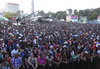 El espacio destinado para acoger al público resultó pequeño. Una multitud similar a la que atestó la plaza se quedó fuera y debió conformarse con ubicarse en el Parque Eugenio María de Hostos o en las calles aledañas para disfrutar de la propuesta musical, que contó con la participación de unos 35 representantes de orquestas que dieron una decarga merenguera desde las 5:00 de la tarde hasta las primeras horas de la madrugada de hoy, desde las dos tarimas montadas para el evento.