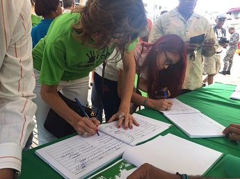 La firma del Libro Verde se inició a las 9:00 a.m., de ayer en el Parque Independencia, por donde desfilaron decenas de personas, entre ellas algunas figuras del ámbito político y empresarial. Concluye el próximo día 22 de este mes.