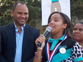 Culminada la actividad Juan de Dios Morel de Jesús (Ñao) se trasladó de inmediato al Centro Educativo Josefa Colón, donde hizo entrega de otra Tablet a la estudiante Yuliany M. de León, quien fue reconocida al mérito estudiantil.