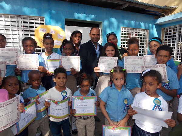 El funcionario municipal inició las actividades en el Liceo Matutino Pedro Henríquez Ureña, donde fueron reconocidos decenas de estudiantes con la entrega de pergaminos, placas y otros regalos por su desempeño dentro de las aulas.