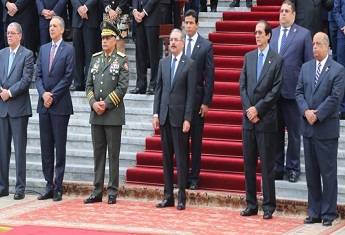 El mandatario fue abordado previo al acto a la Bandera que hizo el Gobierno en la explanada del Palacio Nacional. En el mismo estuvieron presentes decenas de funcionarios e incluyó la interpretación del Himno Nacional.