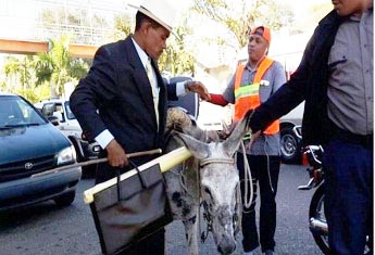 Policía Municipal de Santiago retiene burros a peregrinos viajan al Palacio Nacional