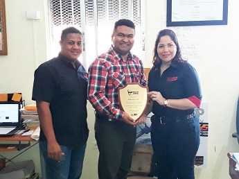 El sencillo acto de reconocimiento se hizo en su oficina por la señora Danilsa Polanco, Gerente de Marcas y Comunicaciones de Arias Motors y Carlos de los Santos, vendedor de Cuentas Especiales de dicha empresa.