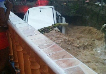 Crecida de río arrastra yipeta con tres personas a bordo en Puerto Plata