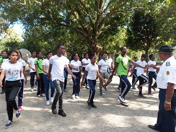 Los estudiantes reciben la formación de manos de los oficiales del CBPB, coronel Ciprián Sánchez, mayor Franklin Reyes y el teniente Diógenes García, bajo la supervición del intendente general de la institución, coronel Ramón Rosario Suárez (Mamble),