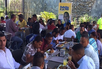 SANTO DOMINGO- Rafelito Valenzuela candidato a la presidencia de la Federación de Estudiantes Dominicanos (FED) por la Vanguardia Estudiantil Dominicana (VED), realizó un multitudinario encuentro- almuerzo con presidentes de 80 asociaciones estudiantes de pueblos y carreras de la Universidad Autónoma de Santo Domingo (UASD).