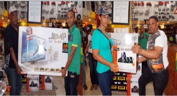 Para ganar, los clientes que resultaron premiados por el sorteo con tómbola, tuvieron que hacer su compra en esta empresa que está ubicada en el cruce del kilómetro 25 de la autopista Duarte y por cada 500 pesos recibieron un boleto con el cual participaron.