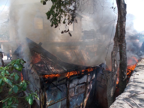 PEDRO BRAND.- Un voraz incendio redujo a cenizas esta mañana una vivienda ubicada en el conocido callejón de Doña Paulina en la calle Las Mercedes del kilómetro 25 de la autopista Duarte en este municipio.