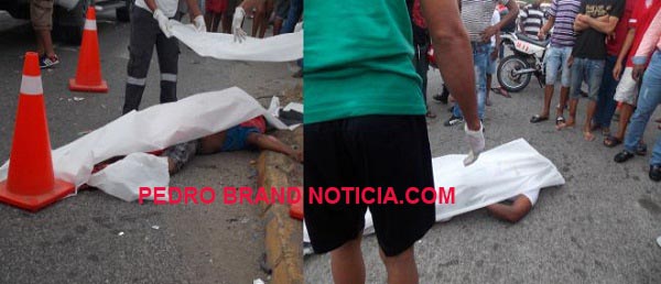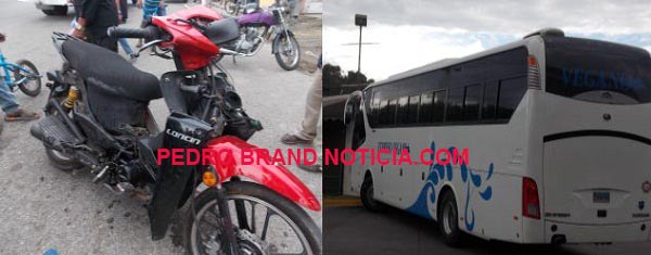 PEDRO BRAND.- Un autobús del transporte de pasajeros de la compañía Expreso Vegano, mató dos hombres la tarde este domingo al embestir la motocicleta en que estos viajaban cuando cruzaban la autopista Duarte en el tramo del kilómetro 25 en este municipio.