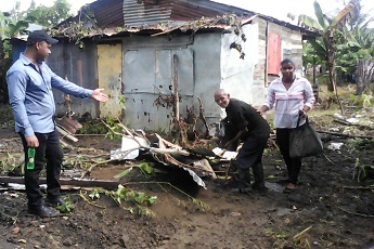 LA GUAYIGA, Pedro Brand.- El director de la Junta Municipal La Guáyiga, Juan de Dios Morel de Jesús (Ñao) recorrió la mañana de este martes el sector Los Coquitos para contactar los daños ocasionados por los aguaceros registrados en las últimas horas por la vaguada que afecta todo el territorio nacional.