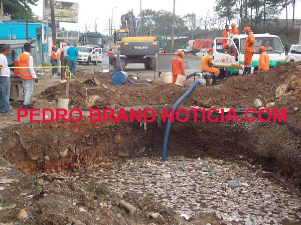 LA GUÁYIGA, Pedro Brand.- Brigada de obreros y maquinarias pesadas del Ministerio de Obras Públicas y Comunicaciones (MOPC) trabajan desde ayer para destapar una alcantarilla que atraviesa la autopista Duarte en el distrito Municipal La Guáyiga, que impide el drenaje de las aguas estancadas en el lugar, como consecuencia de las lluvias que han estado cayendo en los últimos días.
