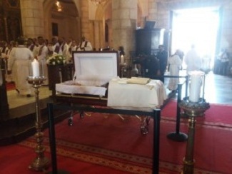 Religiosos católicos van a la Catedral donde son expuestos restos de monseñor Amancio Escapa