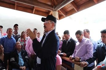 AZUA.- El presidente Danilo Medina se reunió este domingo, en su acostumbrada visita sorpresa de los domingos, con la Asociación de Ganaderos y Caficultores del municipio Las Yayas, y dispuso que una comisión evalúe las solicitudes presentadas.