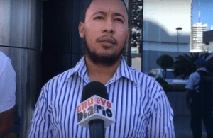 SANTO DOMINGO.- Ex empleados de Odebrehct que trabajaron en el proyecto hidroeléctrico Palomino en San Juan exigieron este miércoles sus prestaciones laborales frente a la torre Diandy XIX.
