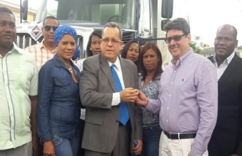 El camión que costó siete millones de pesos, fue entregado al director del distrito municipal José Ramón Hernández Concepción, por José Guillermo Peña, ejecutivo de la Antillana Comercial, empresa distribuidora del aparato en el país.