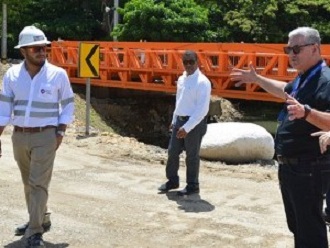 PERAVIA.- Están avanzados en un 85 por ciento los trabajos de construcción del nuevo puente Catalina, ubicado en la comunidad de igual nombre en la provincia Peravia, luego de que la infraestructura anterior colapsara como consecuencia de la crecida del río provocada por las lluvias registradas en abril pasado.