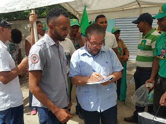 PEDRO BRAND.- Guillermo Moreno, excandidato presidencial y presidente de Alianza País (AlPaís) estuvo este domingo encabezando la campaña de afiliación de esa organización política que inició en el sector Eduardo Brito del kilómetro 24 de la antigua carretera Duarte en este municipio.