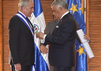 La condecoración al diplomático de origen español, le fue impuesta por el canciller Miguel Vargas, este jueves, durante una ceremonia efectuada en los salones del Centro de Convenciones del Ministerio de Relaciones Exteriores.