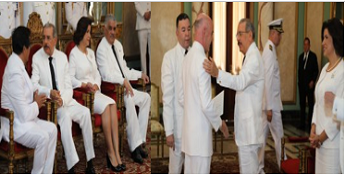 La presentación de los diplomáticos tuvo lugar en el salón de Embajadores del Palacio Nacional.