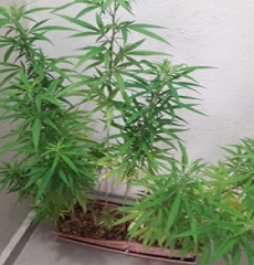 Las matas se encontraban en la parte trasera de la vivienda, dentro de un tarro lleno de tierra, y al lado del mismo había una porción de marihuana con un peso de 9.9 gramos.
