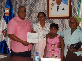 PEDRO BRAND.- El alcalde de Pedro Brand entregó esta tarde un cheque por valor de RD$50 mil a una madre soltera de dos niñas, una de las cuales necesita ser sometida a una cirugía de trasplante de corneas, tras ser diagnosticada de una enfermedad denominada queratocono avanzada en ambos ojos.