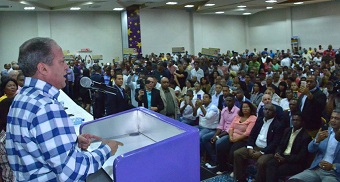 “A partir de esta actividad, el PLD, en cualquier escenario del país, en cualquier barrio, ciudad, municipio o provincia del país estará al frente, defendiendo su gobierno y la gestión del Presidente Danilo Medina” exclamó en el acto de juramentación del Frente Nacional Comunitario.