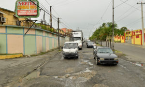 SANTO DOMINGO.-El deterioro que presenta un tramo de aproximadamente 100 metros de la avenida Los Beisbolistas atenta contra la seguridad de los que transitan por esta vía y la viabilidad del tráfico.