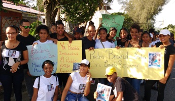 PEDRO BRAND.- Estudiantes del Liceo Matutino General Gregorio Luperón de este municipio, marcharon la tarde de este viernes en solidaridad con la familia de la adolescente embarazada de 16 años, Emely Peguero Polanco, que anoche fue hallada muerta dentro de una maleta en la comunidad La Guama, del municipio de Cayetano Germosén, en la provincia Espaillat, luego de 8 días dada como desaparecida.