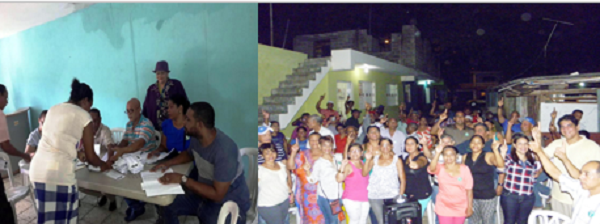 Desde temprana hora de la mañana decenas de Villafarense cédula en manos se registraban en filas en las afuera de la cancha deportiva Feliberto Peña del Club Villa Faro, para ver si estaban en el padrón de votación. Y de 15 en 15 fueron pasando y ejerciendo su derecho a voto como consagran los Reglamentos del departamento de Juntas de Vecinos y OCB»s del Ayuntamiento.
