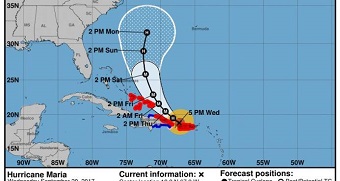 SANTO DOMINGO.- El Centro Nacional de Huracanes de Miami, informó la tarde de este miércoles, que el huracán María se debilita a categoría 2, pero podría volver a tomar fuerza para el jueves.
